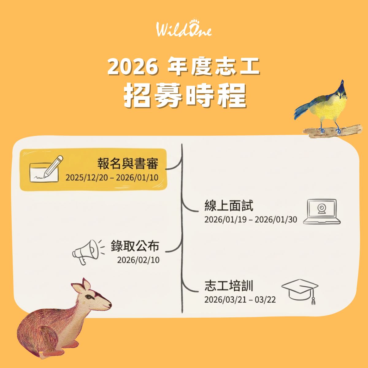 • 報名前請務必詳閱 📋2026野灣年度志工報名簡章 ,確保您知悉所有的權利與義務!