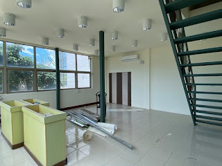 二樓的另一側是救援中心的住院部,手術完等待康復的動物們在會暫時待在住這裡,住院部一樣為了節省冷氣費用而做了夾層設計,二樓的空間有待規劃,若是架上了黑色蘭花網也許也可以當作小型鳥類的練飛空間。二樓住院部的門外就是原本咖啡廳的吧檯,現在則是規劃為動物用廚房,與住院部鄰近,縮短走動距離將可以有效提升工作效率。順著醫療區的邊緣長廊走,我們會來到通往2樓露臺的大門。未來,若是能將2樓露臺的大面積落地窗作為參訪空間,讓民眾可以透過自己的雙眼見證救援的過程,想必十分具有教育意義。