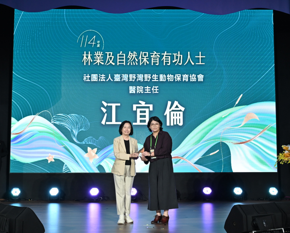 非營利野生動物醫院主任江宜倫,榮獲「林業及自然保育有功人士」
