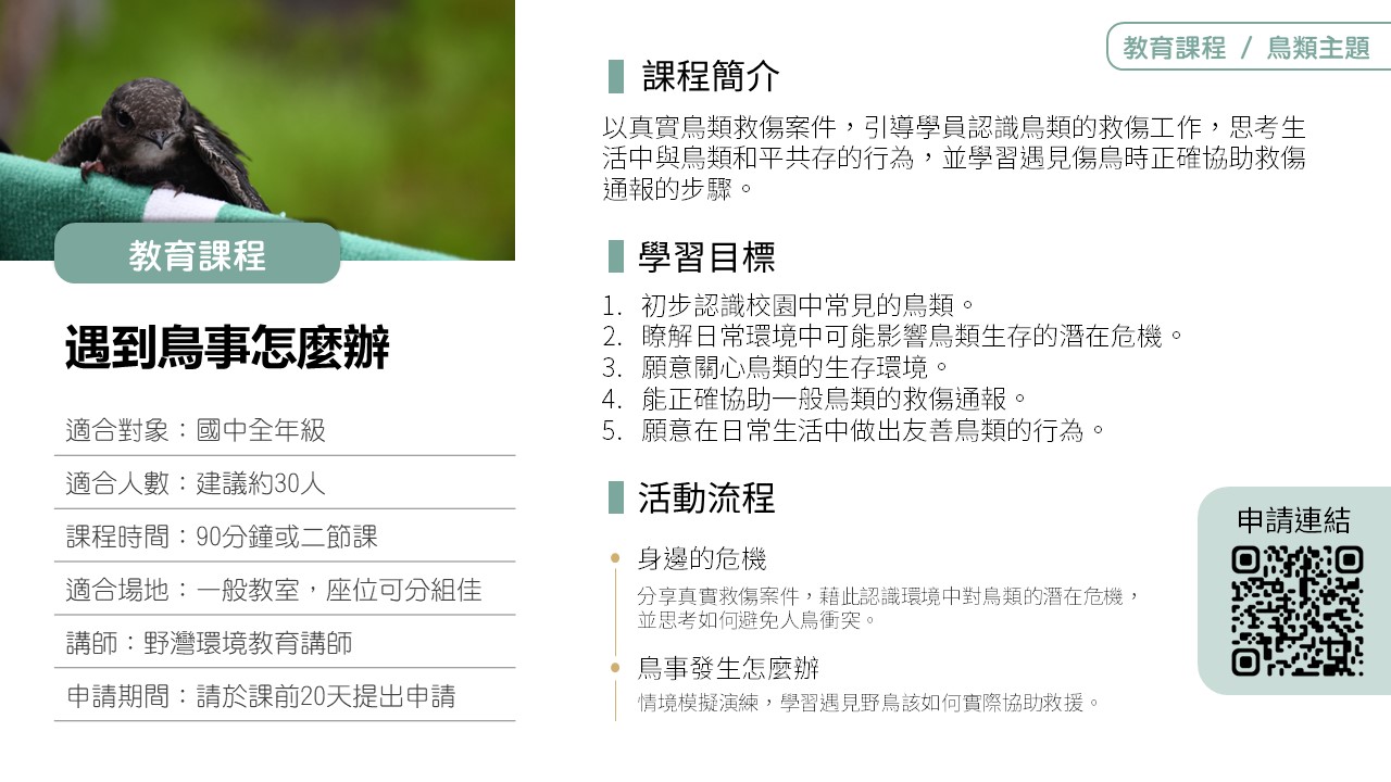 - 國中適用|《遇到鳥事怎麼辦》課程申請連結