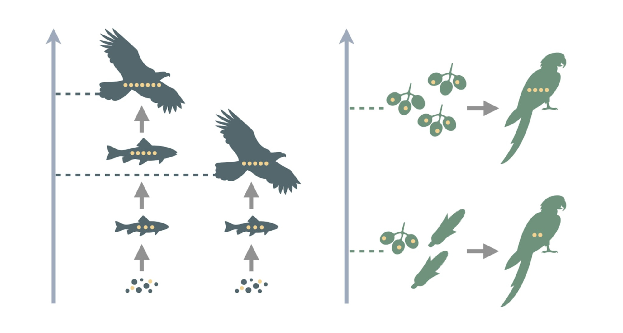 一些不易代謝的物質(如重金屬、穩定同位素等)在生態系統中會隨著生物代謝與食物鏈累積、傳遞,可用以估算生物的營養階層或飲食來源比例
